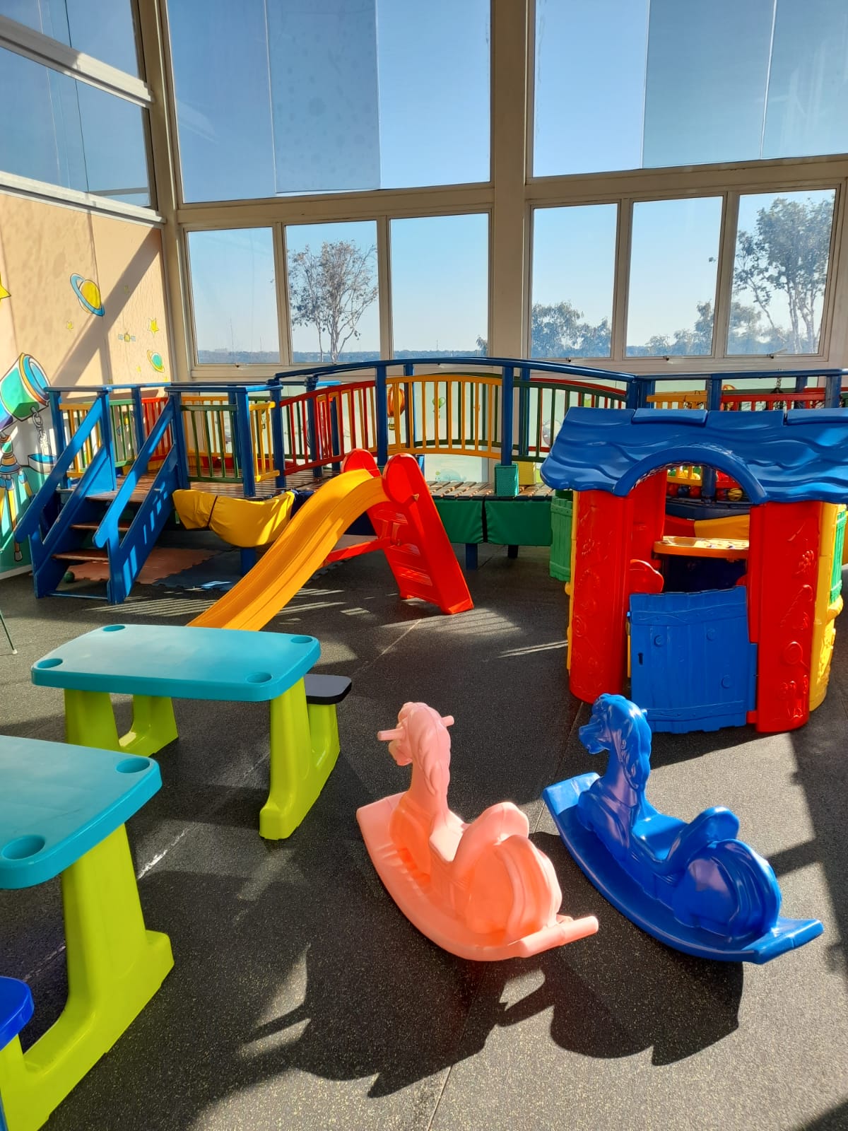 Ball pool, bridge, horse, coloring table and whatever else the children's imagination allows.